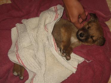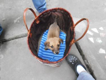 I thought I would post some pictures of our puppy since everyone was so kind in replying to this question. So far, he is both an inside and an outside dog. He has become potty trained so that he does not go inside the house, but we are having trouble getting him to not want to rifle through the garbage.